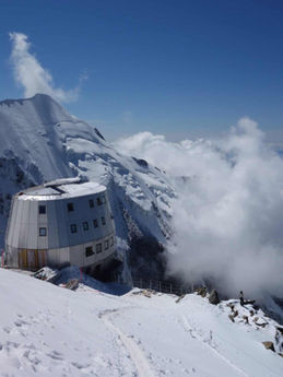 This trip will start from Les Houches. We will take a cable car and a tramway to Nid d’Aigle and climb up to the Tete Rousse Hut. Finally, we will arrive at the Goûter Hut (3817m), where we will enjoy dinner and rest to prepare for the ascent on the next day.